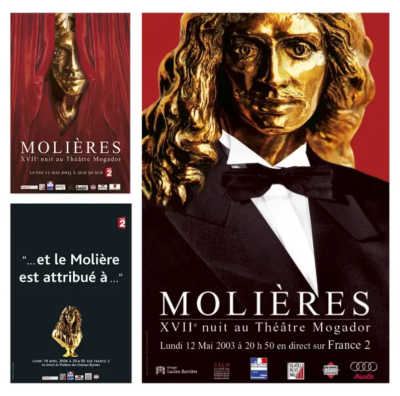 Création de l’affiche officielle des Molières, cérémonie emblématique récompensant les meilleurs spectacles de théâtre. Ce visuel devait incarner l’excellence du spectacle vivant, tout en respectant les codes élégants et institutionnels de l’événement.